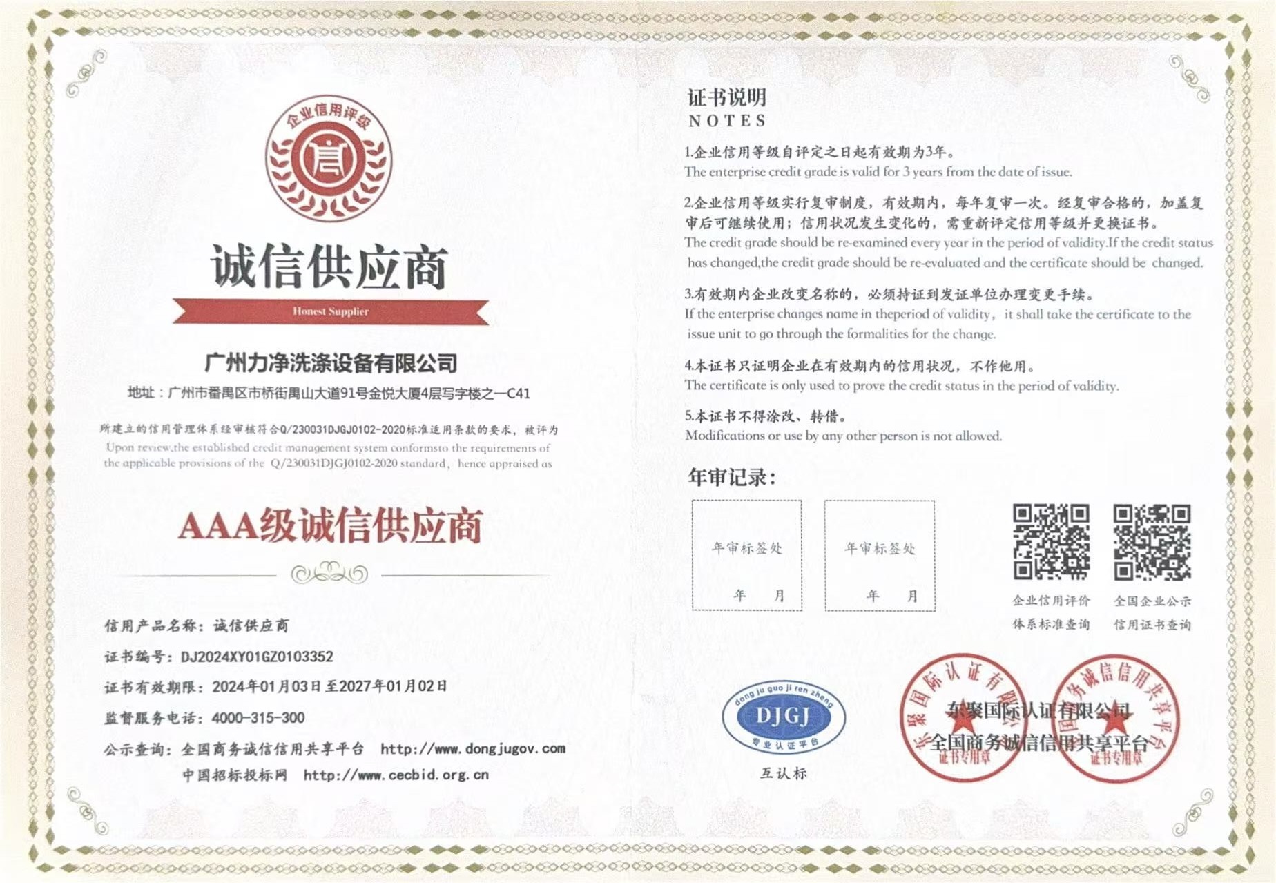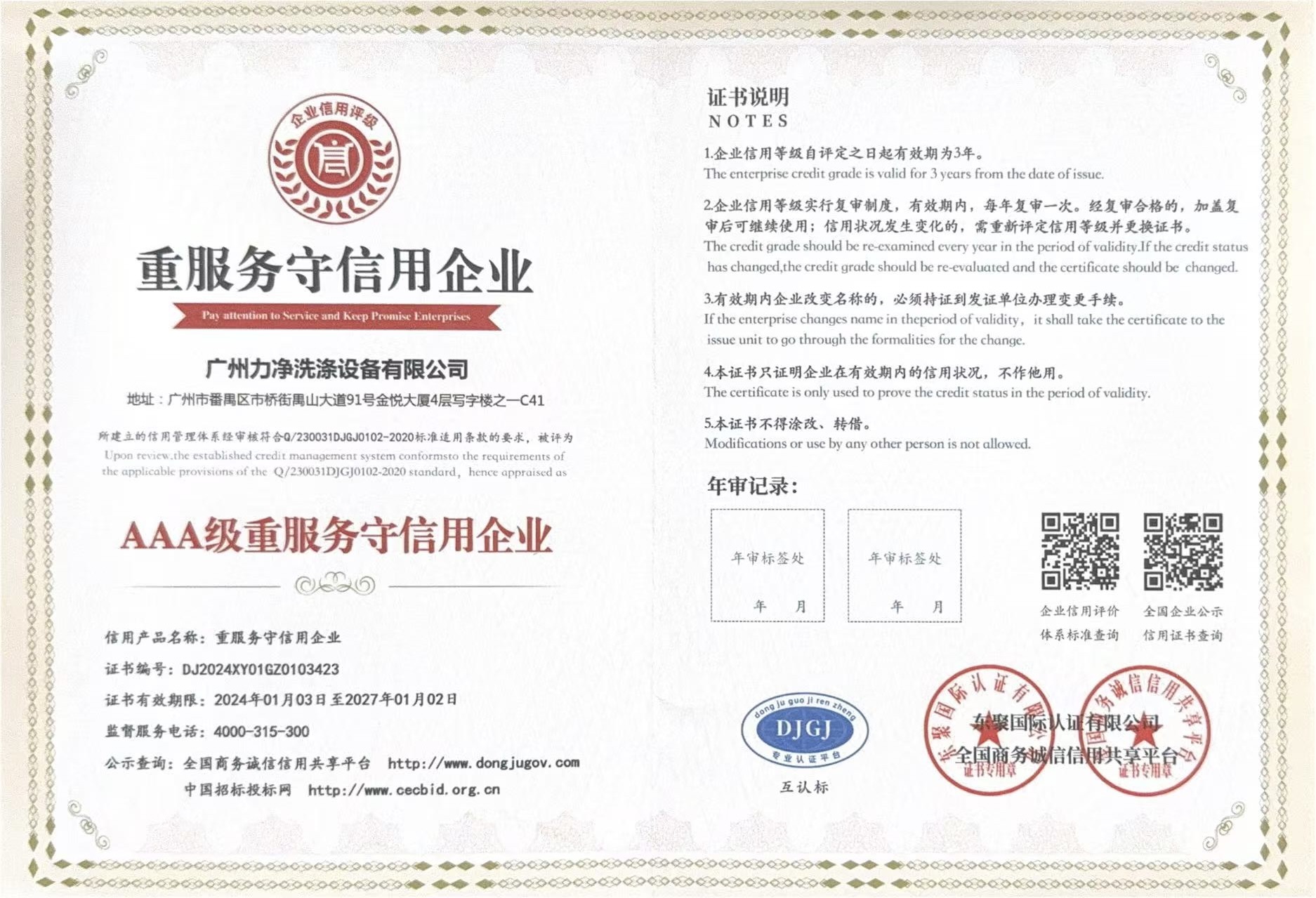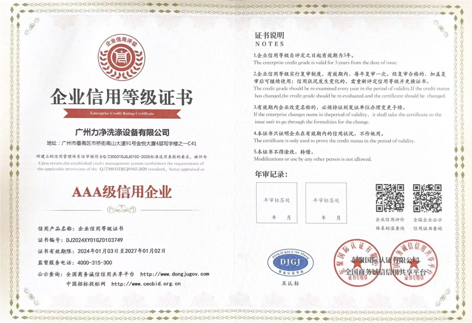 • AAA企業(yè)信用等級證書