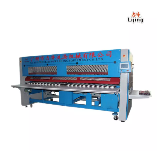 洗滌設(shè)備還包括床單被套熨燙機(jī)。它的主要功能是熨燙床單被套的烘干機(jī),也還具有烘干功能。 廣州力凈生產(chǎn)的燙平機(jī)有2.5米、2.8米、3米、3.3米等寬度大小來分。 熨燙輥的數(shù)量也分為單輥熨燙機(jī)到五輥熨燙機(jī)。 具體型號比例根據(jù)客房數(shù)量和床單和被套的寬度選擇。