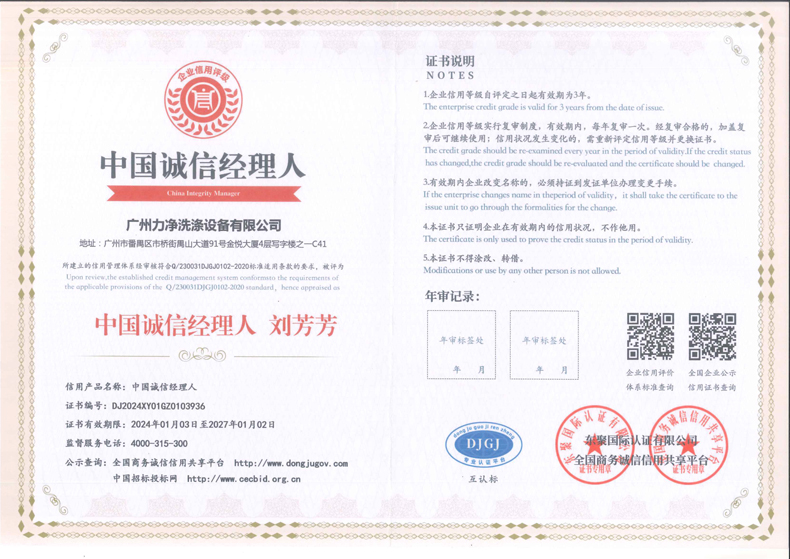 廣州力凈獲得的相關(guān)證書